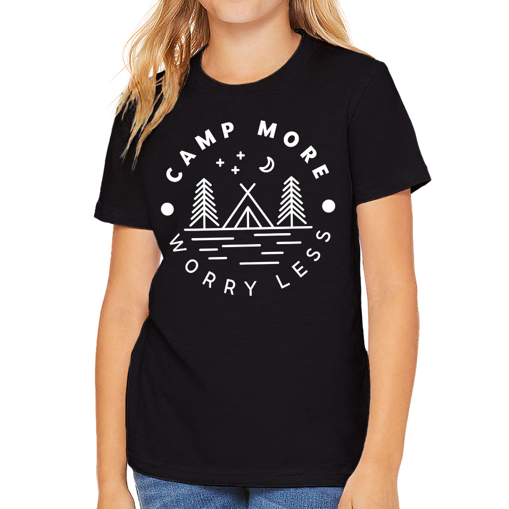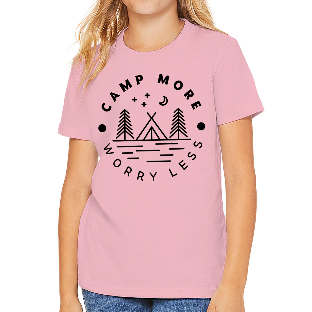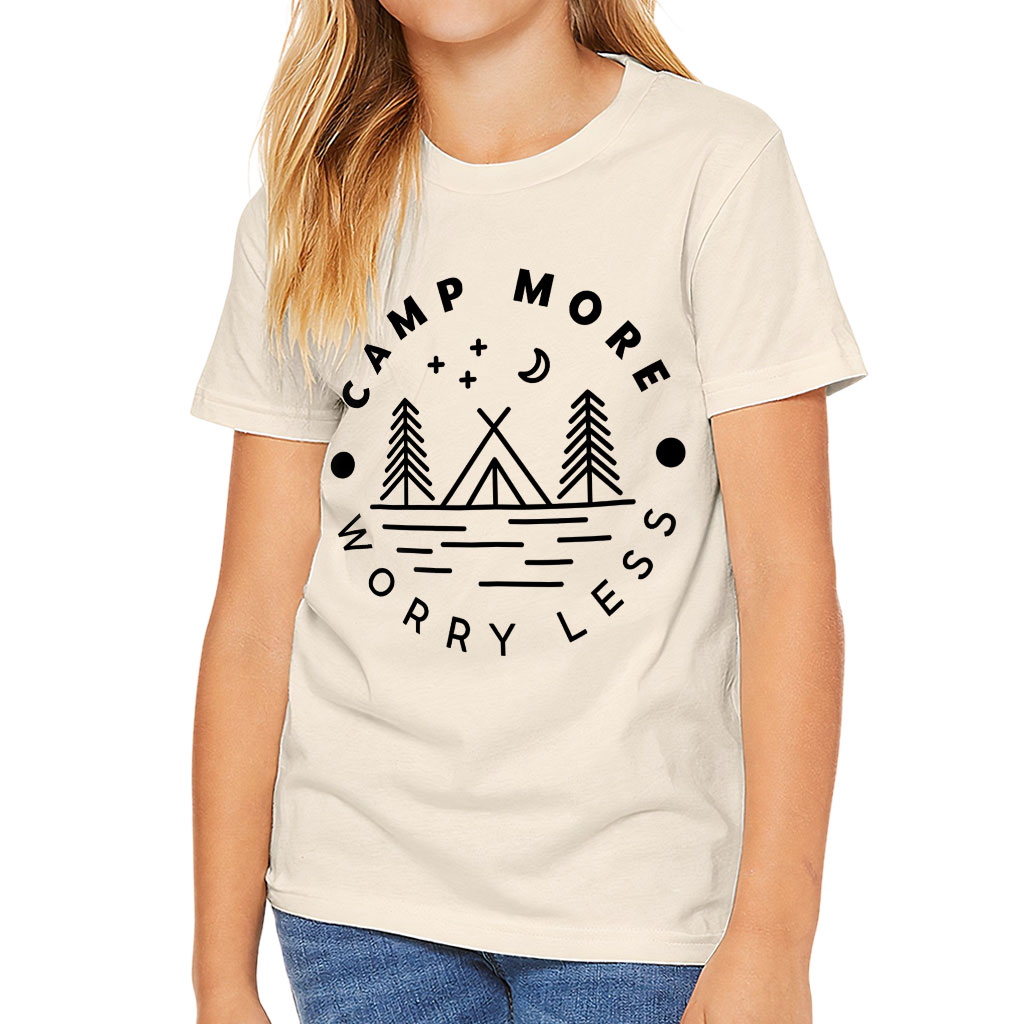 Camp More Worry Less Kids’ T-Shirt is no ordinary piece of clothing. Its crew neck and short