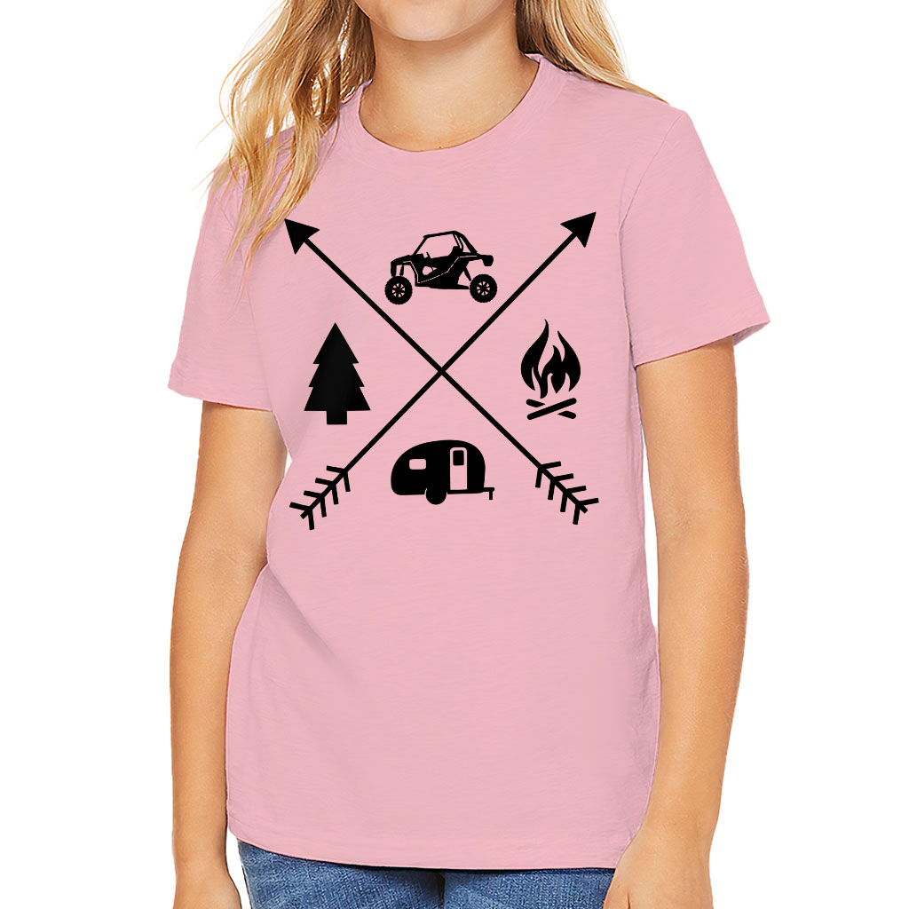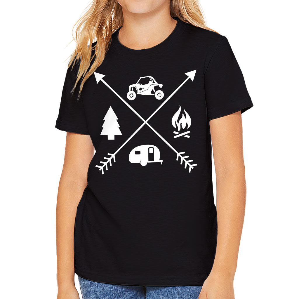 Camping Graphic Kids’ T-Shirt is no ordinary piece of clothing. Its crew neck and short