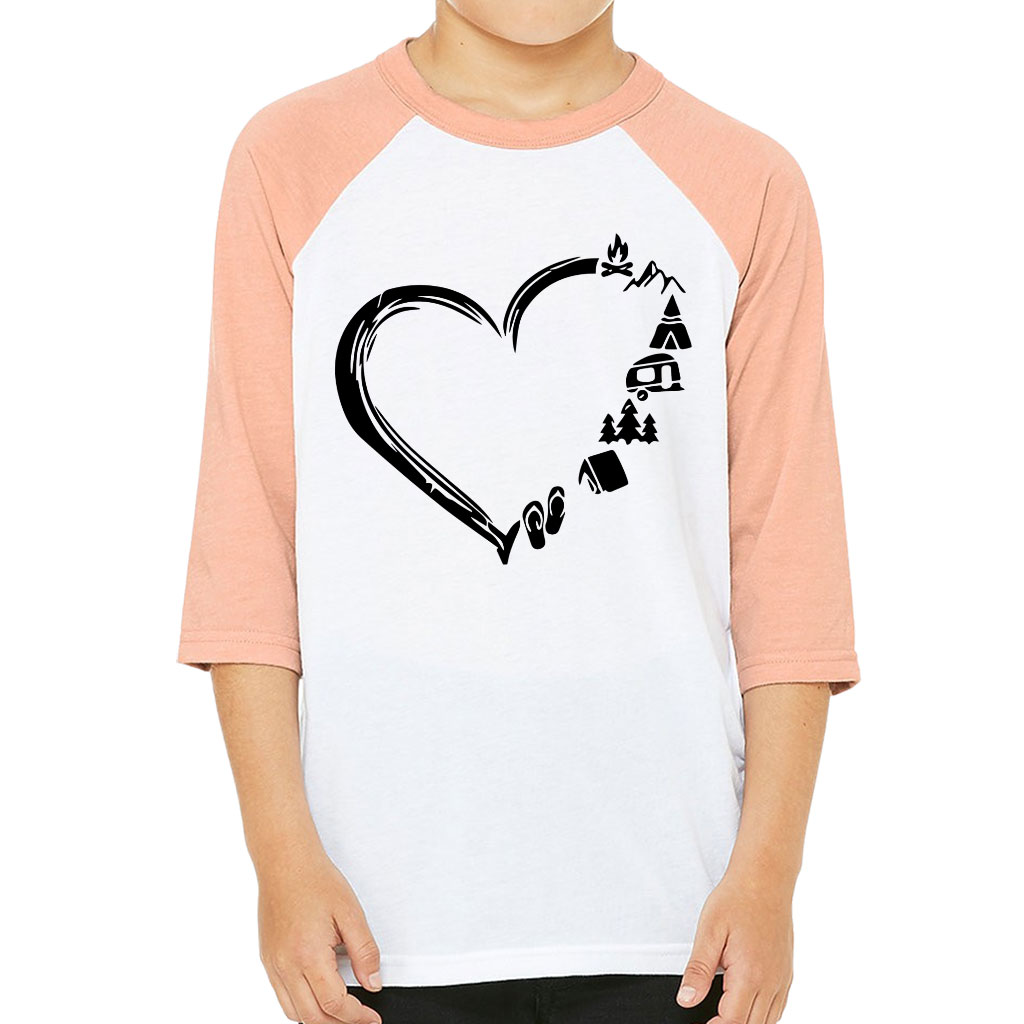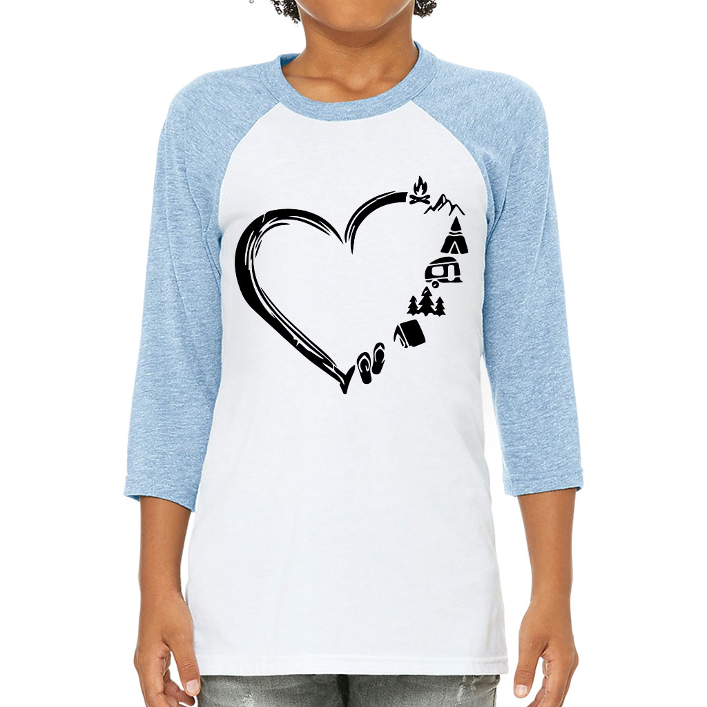 Camping Heart Kids’ Baseball T-Shirt