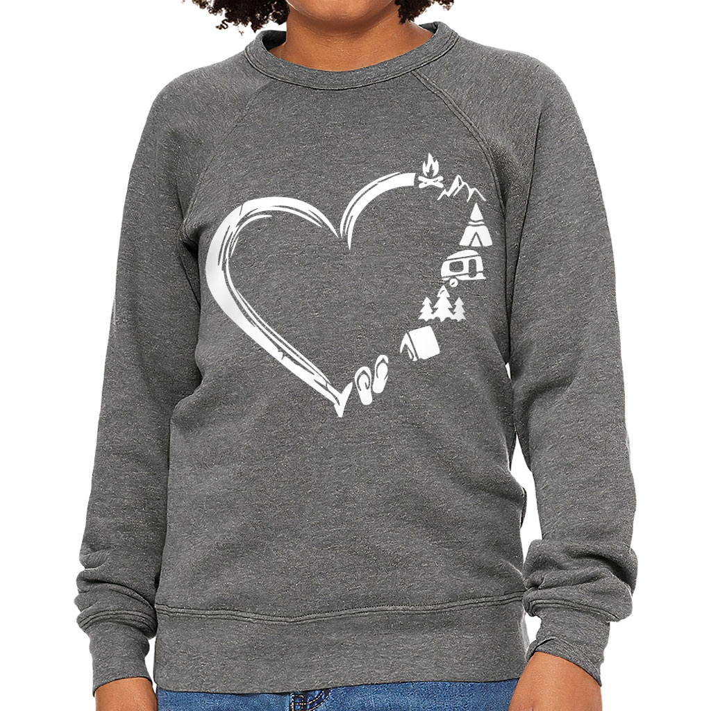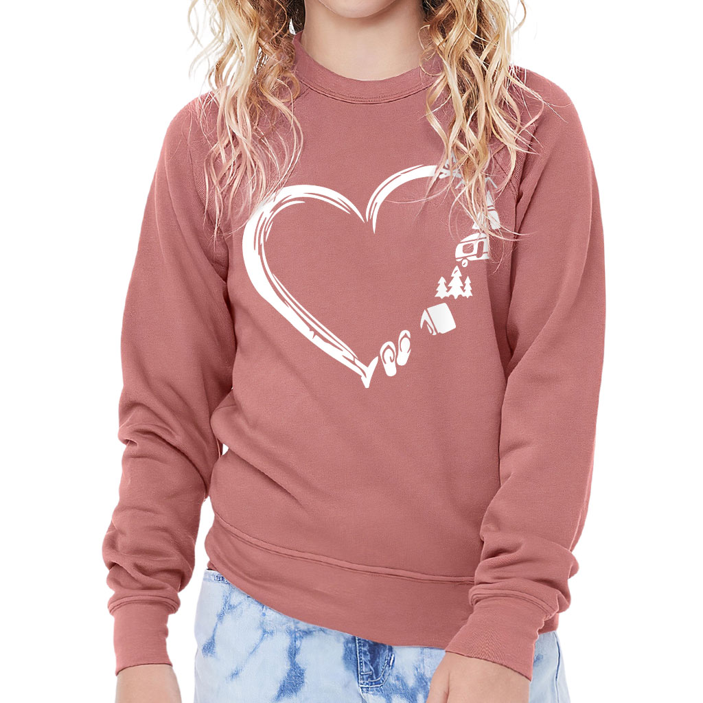 This remarkably soft pullover crewneck sweatshirt lends itself to daily wear and year-round layering. Camping Heart Kids’ Raglan Sweatshirt features ribbed cuffs and a waistband, a crew neck, and a fashion-forward fleece fabrication.