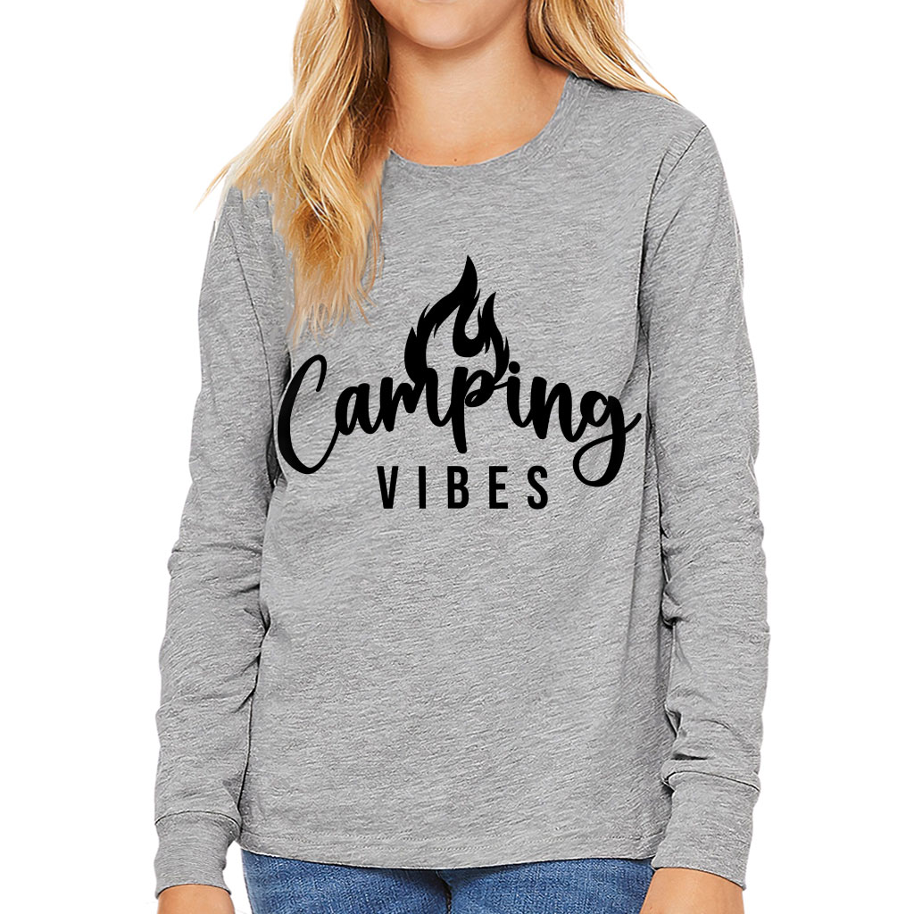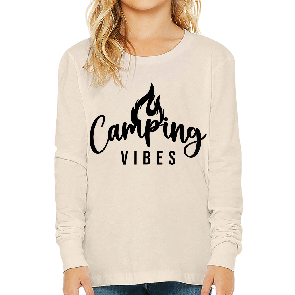 Camping Vibes Kids’ Long Sleeve T-Shirt – Comfort Colors Design Apparel – Colorful Gift