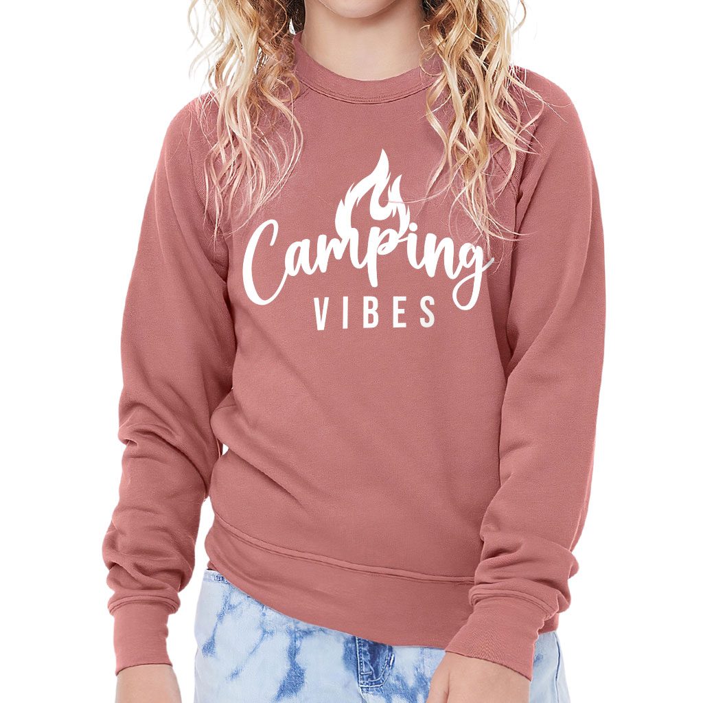 Camping Vibes Kids’ Raglan Sweatshirt – Vacation Trendy Gift Ideas – Girls Present