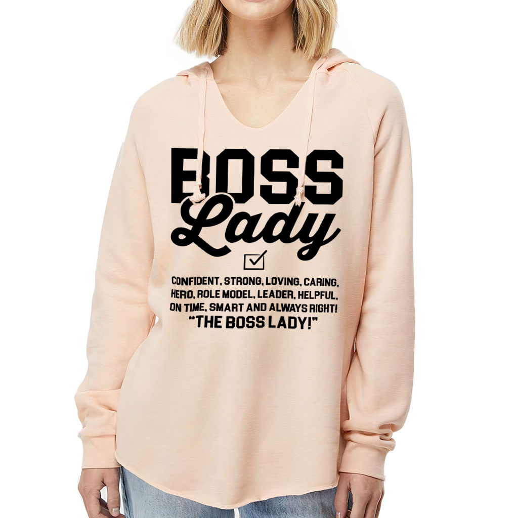 Cotton blend fabric is super soft and comfortable to wear. Definition Boss Lady California Wave Wash Hoodie is light and airy with soft-to-the-touch fabric, made of cotton and polyester. It is also skin-friendly, very stretchy and comfortable, that feels as good as it looks.