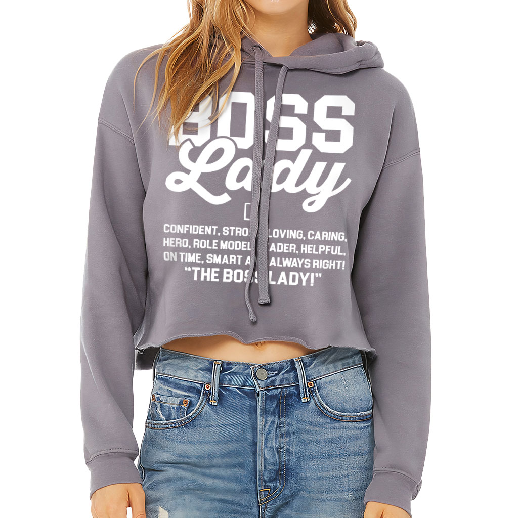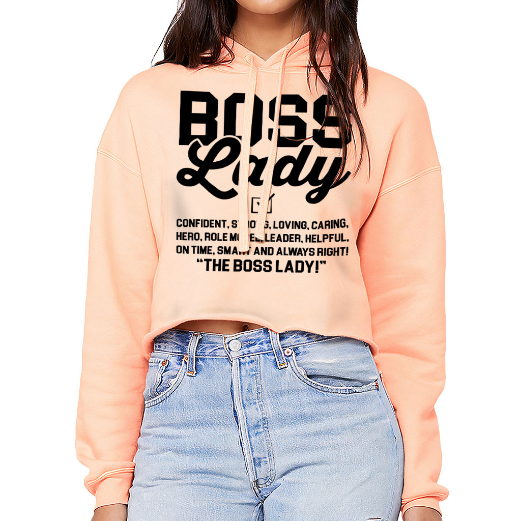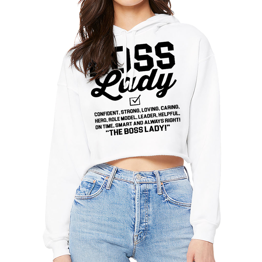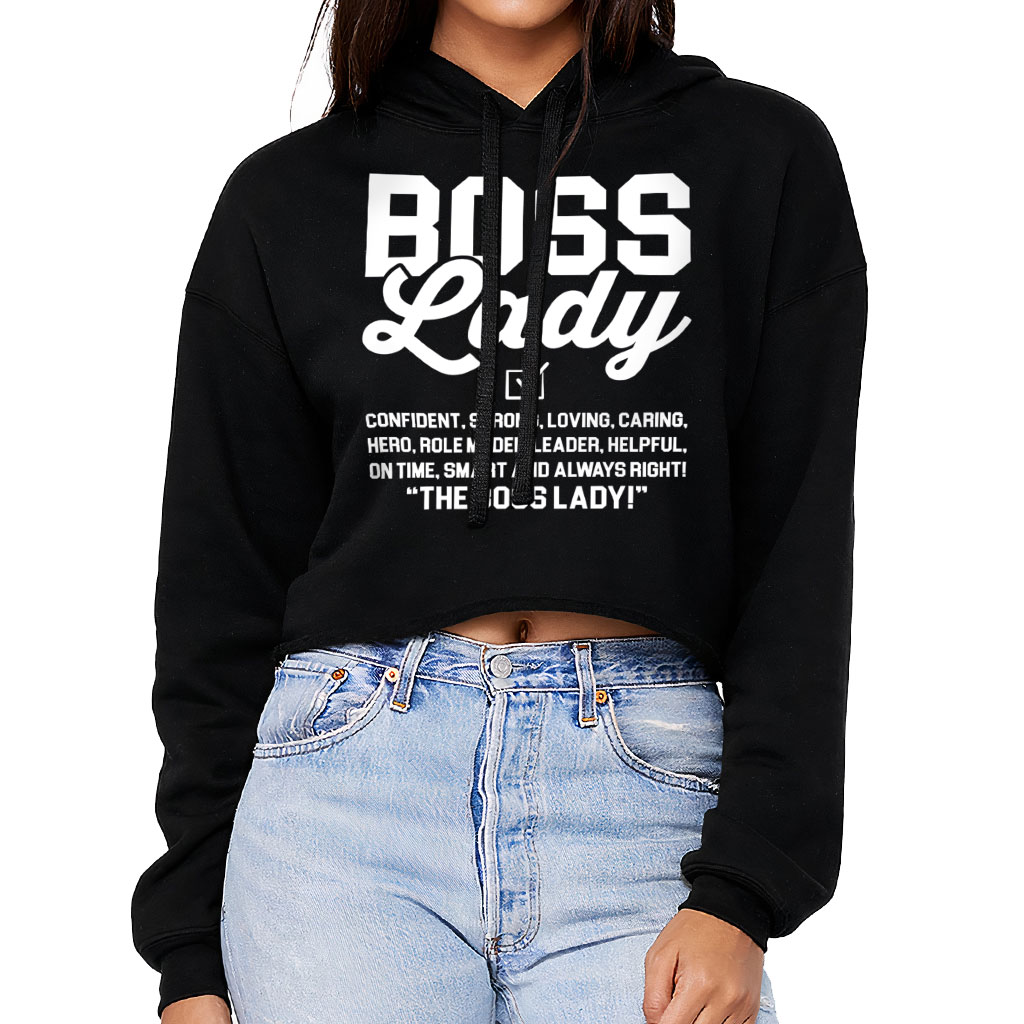 Definition Boss Lady Women’s Cropped Hoodie is proudly made with 7x less water than average manufacturers, in recycle-friendly facilities that also guarantee zero sweatshop conditions. Boss Lady Stuff is designed and printed in California.