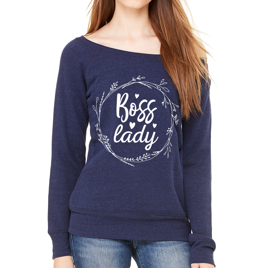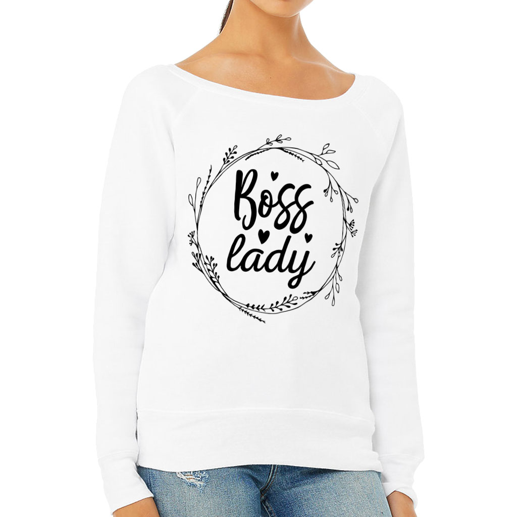 Floral Boss Lady Wide Neck Sweatshirt Boss Lady Present is the perfect piece to spruce up your wardrobe! It has a relaxed fit and a side-seamed finish, so you can ride into style with ease. The 1×1 rib neckline features a fabulous scoop neck that flatters any silhouette. Enjoy the look…
