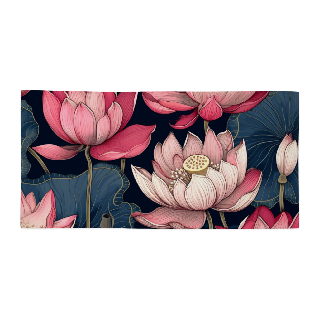 Made from high-quality polyester, Lotus Pattern Beach Towel is designed to be super soft and comfortable while remaining both durable and lightweight. Its stunning print side will turn heads on the beach or anywhere else you decide to use it.